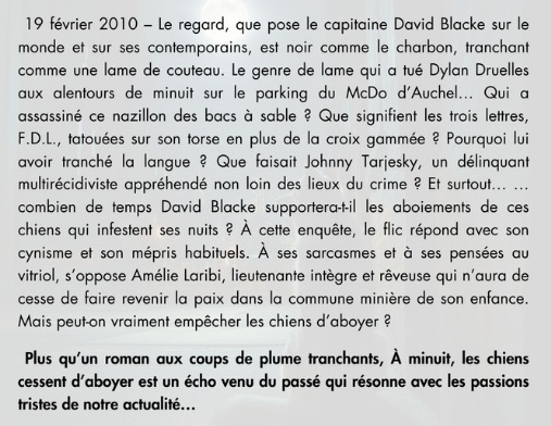 (Pour « À minuit, les chiens cessent d’aboyer ») : L’écriture cynique de l’auteur, à l’image du mental de ce flic, permet véritablement de faire briller ce personnage. Un homme à la limite du sadomasochisme dans les relations humaines.